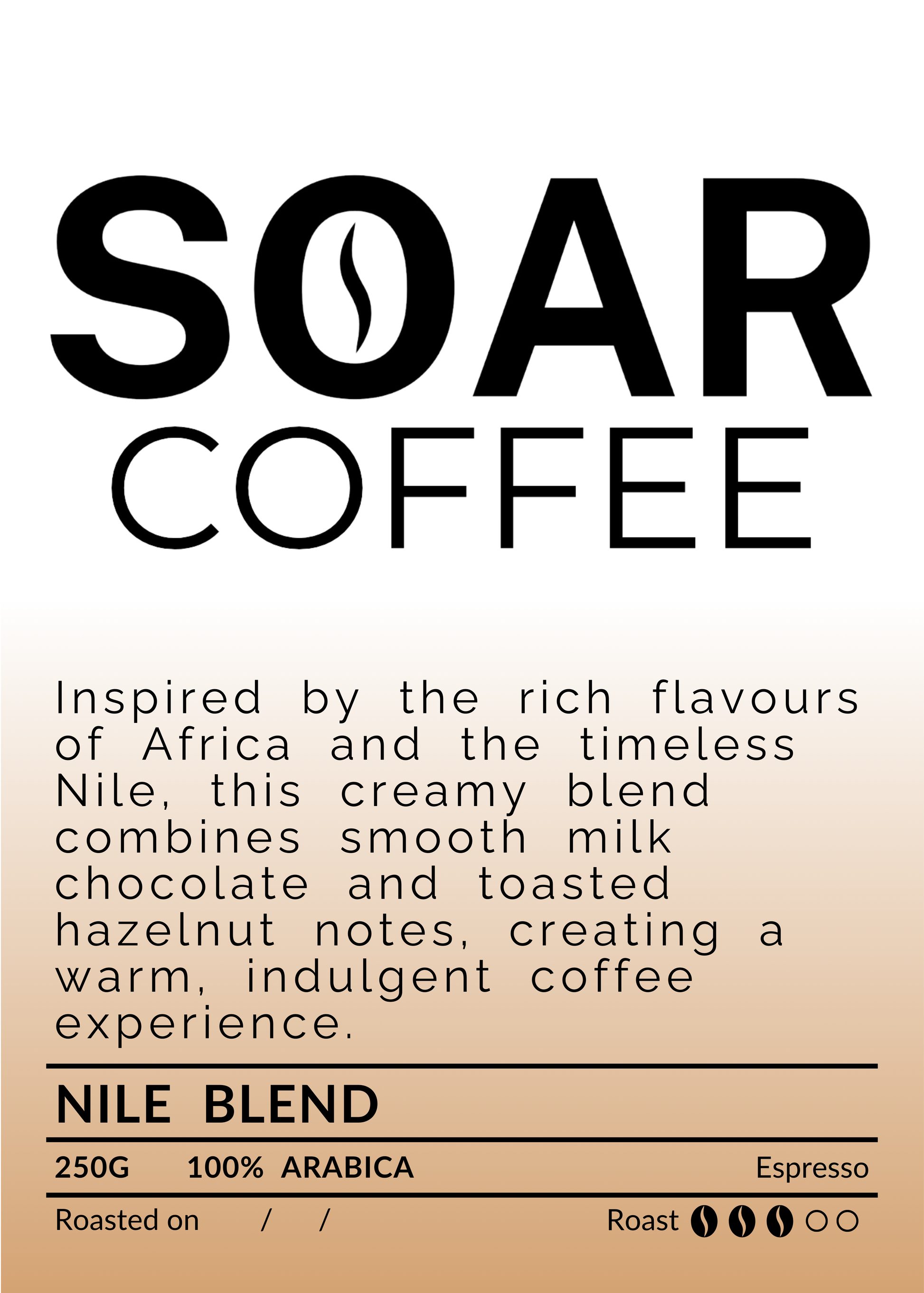 Inspired by the majestic Nile River, this blend captures the essence of Africa's rich coffee heritage. With flavours of milk chocolate, toasted hazelnuts, and a luscious creamy texture, it offers a luxurious experience reminiscent of the serene flow of the Nile itself.